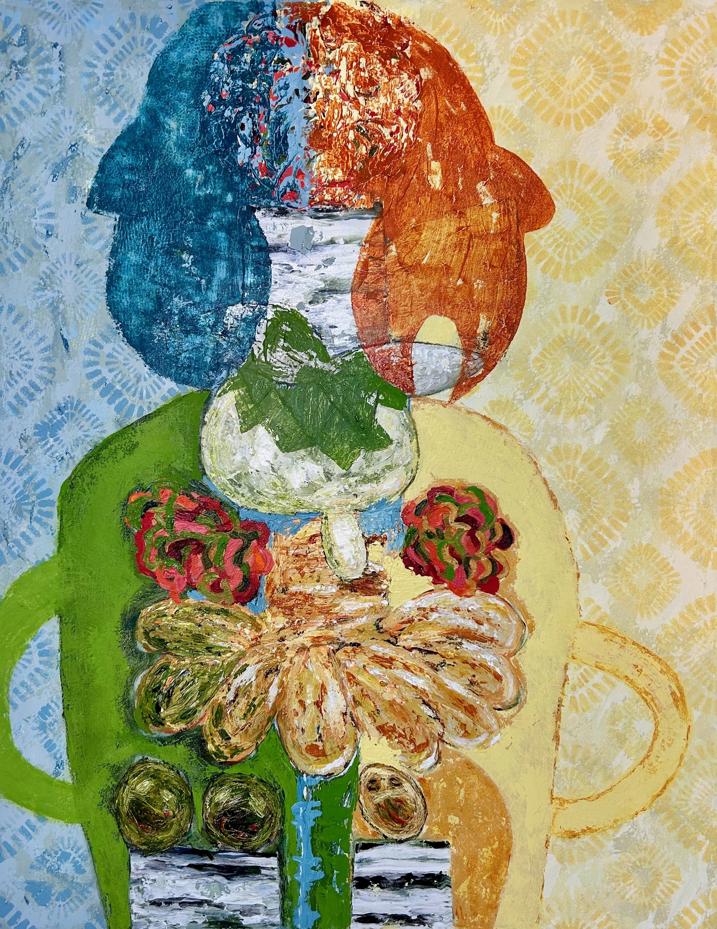 "How Does Your Garden Grow?" acrylic, pumice and molding paste on canvas, 36" x 28"